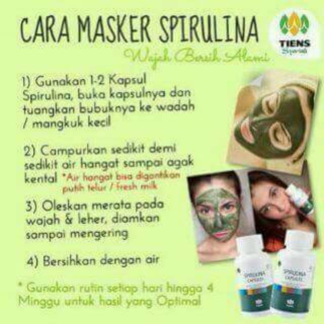 Adapun cara yang bisa anda lakukan adalah dengan menuangkan 1. Spirulina diklaim dapat membuat kulit terlihat lebih cantik dan bersih jika dikonsumsi sebagai suplemen maupun dibuat menjadi masker baik untuk kulit kering maupun yang mudah. 1 sendok makan bubuk spirulina.